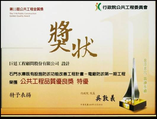- 100年度 石門水庫及其集水區整治計畫—電廠防淤第一期工程 特優