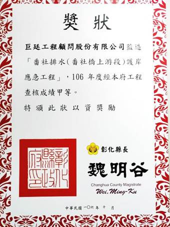 - 106年度 番社排水(番社橋上游段)護岸應急工程 第一名