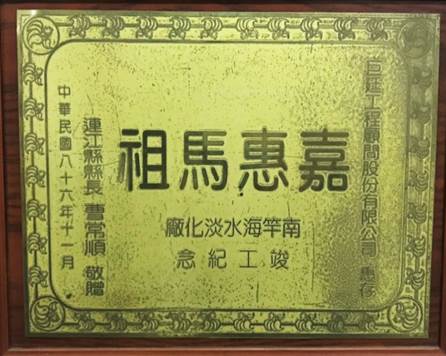 - 110年度 「抗旱2.0計畫台中暨其他水井工程暨緊急處理第三階段」設計及監造委託技術服務案 圓滿成功獎牌