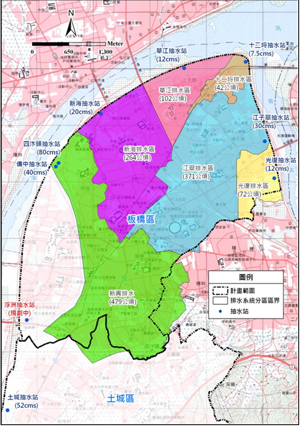 有鑑於防洪安全影響民眾生命財產及安全甚鉅,更加凸顯本地區 整體防洪排水之重要性及急迫性,因此期望藉由本計畫整體區域防洪 之觀念,除規劃提昇雨水下水道系統防洪功能並輔以新建抽水站等, 使之在規劃設計之保護程度內,減少暴雨洪災之損害程度之工程方案 外;同時配合區域內都市土地利用規劃,增加入滲丶滯洪空間,規劃 雨水貯留設施等非工程手段,並擬定本地區排水開發準則,進行系統 性與全面性之檢討及規劃。經由上述綜合治水方法,徹底解決區域內 洪災問題,以保障民眾生命財產安全。